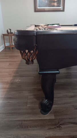 Beautiful 7ft Connelly pool table with a deep espresso finish and elegant ram’s horn legs for a bold, high-end look. Save big compared to buying new without compromising on quality!